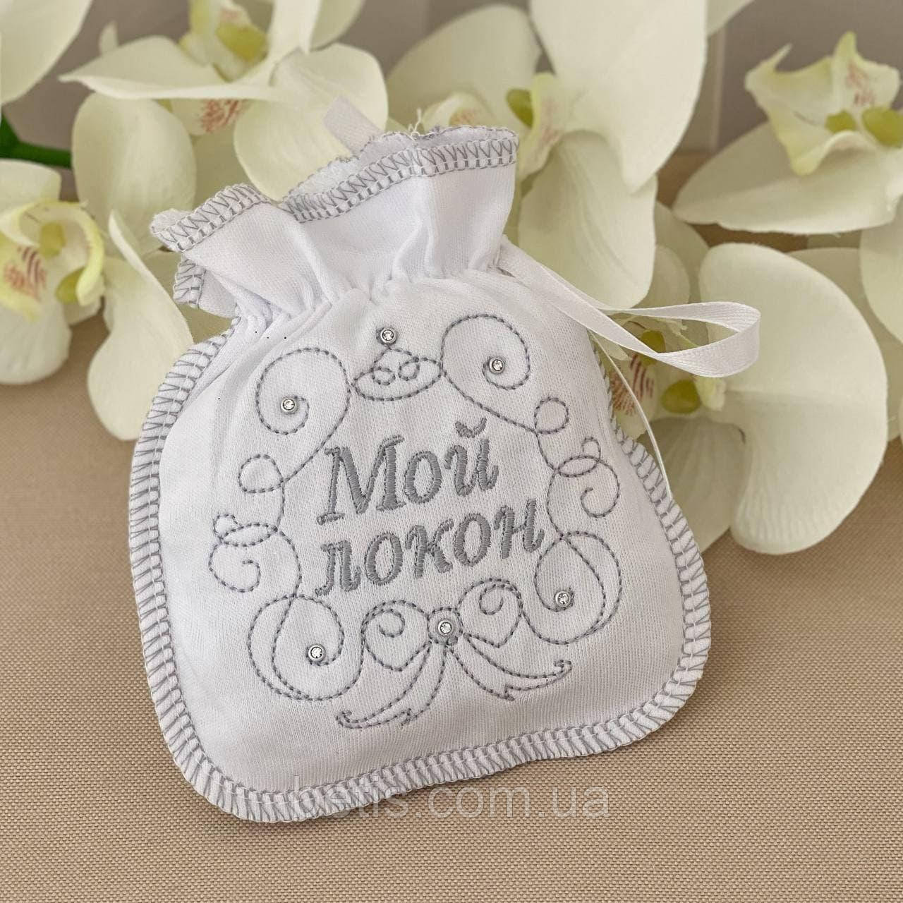 Мішечок "Мой локон" аксесуар для хрещення 100% бавовна Білий/срібло Інтерлок арт.27081970